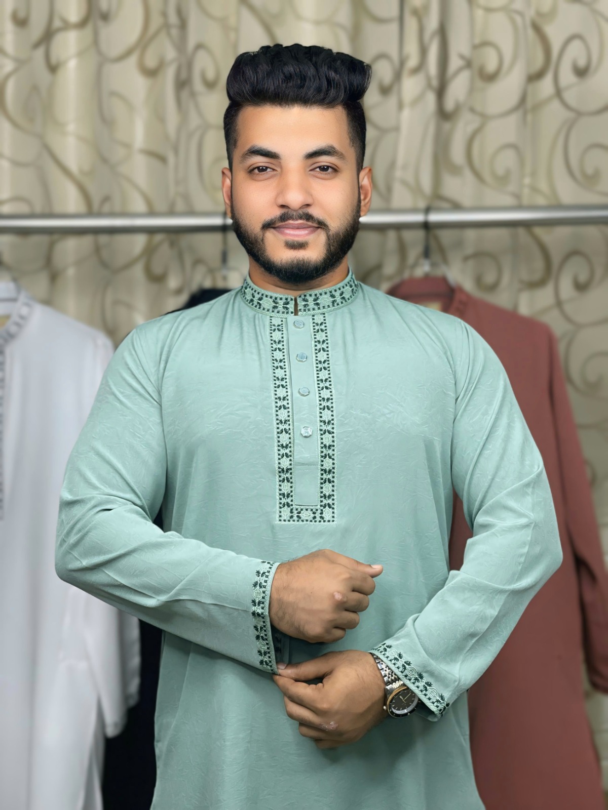 আপনার ঐতিহ্যবাহী পোশাকে দিন প্রিমিয়াম টাচ আমাদের এম্ব্রডারি চায়না স্টিচ পাঞ্জাবী দিয়ে।