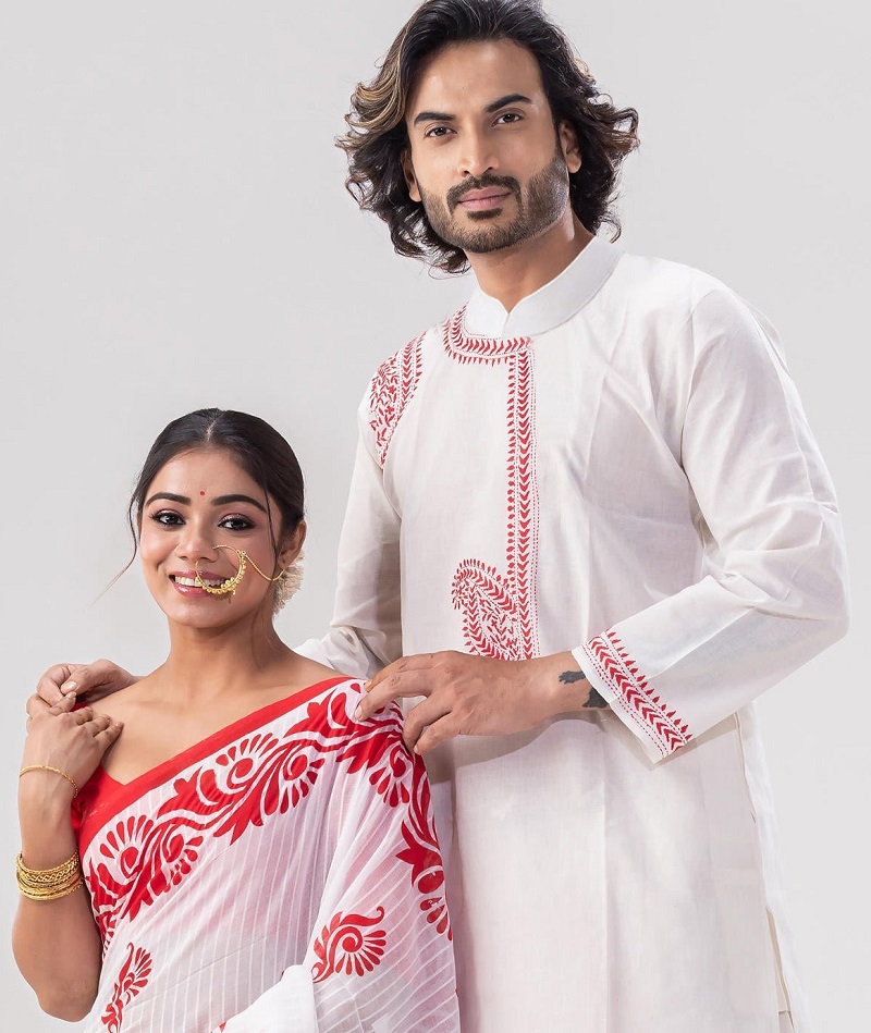 আর এই সাদা এই কাপল ড্রেসটা একসাথে পরলে দেখতে লাগে পরিপাটি আর সুন্দর।